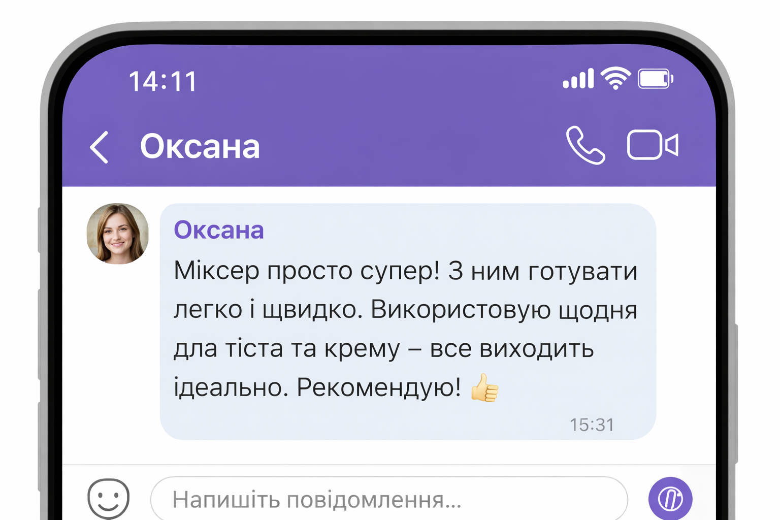 Міксер просто супер! З ним готувати легко і швидко. Використовую щодня для тіста та крему – все виходить ідеально. Рекомендую!